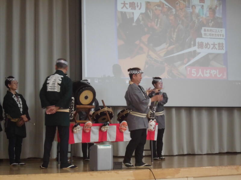 3年生が「お囃子保存会」の方をお招きして、お囃子について学習しました。