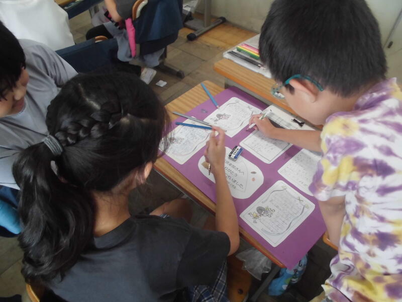 2年生が「町探検」のまとめをグループごとにやっていました。