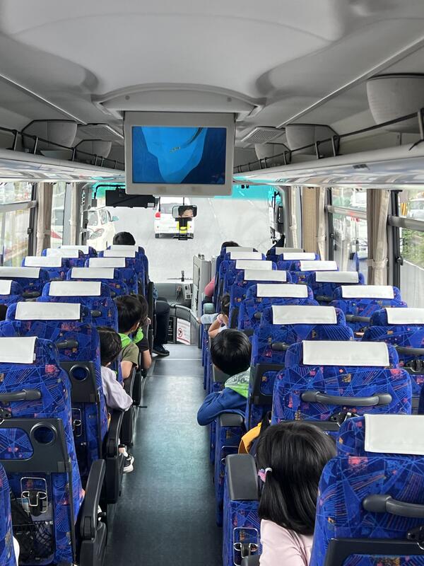 楽しかった修学旅行もあっとう間に帰り道です。帰りはDVDをみながら静かに帰ります。