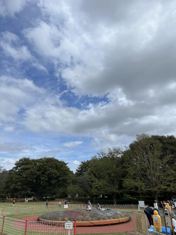 これから遊びます。晴れ間も見えて心地よい風が吹いています。