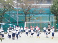 1年生は校庭で、「シャ