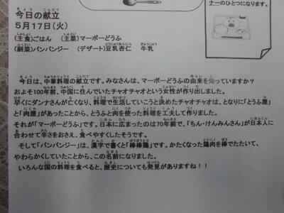 5/17(火)のランチタイムだより!マーボー豆腐・棒棒鶏の歴史!!