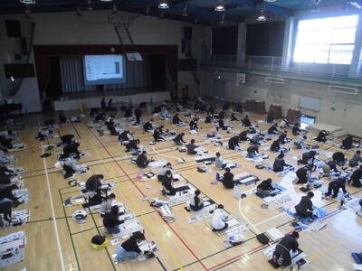 学習の様子 投稿日時 : 01/10 行徳小学校管理者 3~6年生 国語 書初め 1月9日に 3、4年生 1月10日に 5、6年生が 体育館で書初めです。体育館にエアコンが設置され、寒さも和らいでいますので、集中して取り組めました。 冬休み中のご家庭での練習、ありがとうございました。