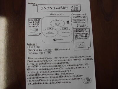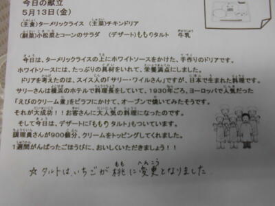 5/13(金)ランチタイムだより!手作りドリア&調理員さんによるトッピングデザート900個!!