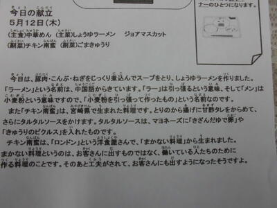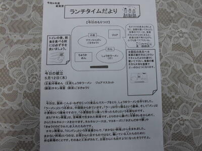 5/13(木)のランチタイムだより!ラーメン・チキン南蛮!!