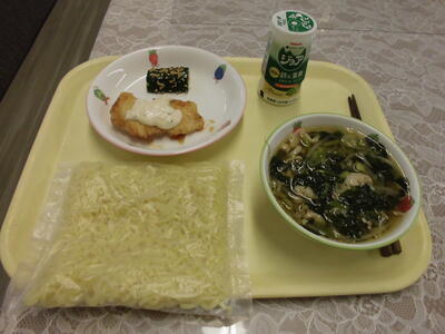 献立:醤油ラーメン、ジョアマスカット、チキン南蛮、胡麻きゅうり!