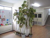 3年生では、花壇で大きく育ったひまわりを校舎の廊下に持ってきて、より近くでその大きさや様子等が実感できるようにしています。写真撮影の際に通りがかった3年生「一番高いのは2m20cmです」と教えてくれました。