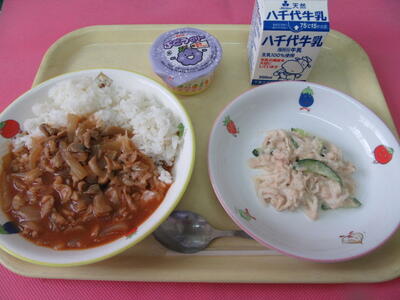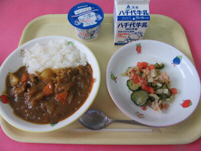 本日の献立は、チキンカレー・イタリアンサラダ・ヨーグルト・牛乳です。