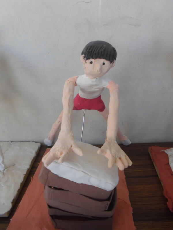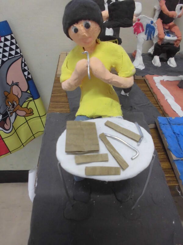 「将来の自分」を紙粘土で作成しています。素敵な作品ばかりです。