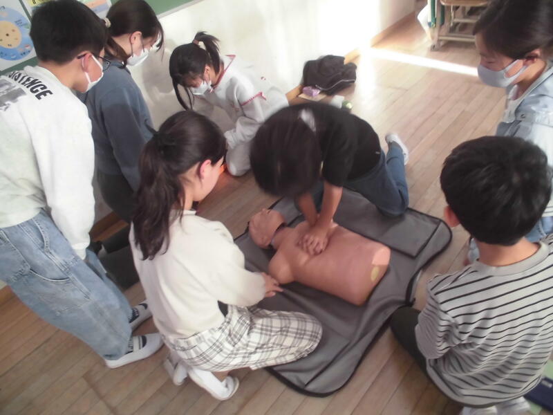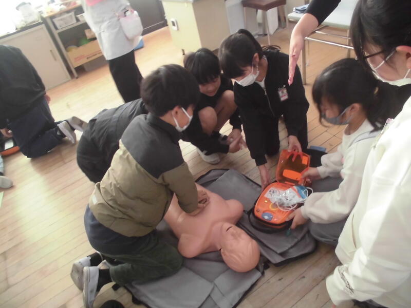 健康委員会の児童が、外部講師を招きAEDの使い方を学びました。