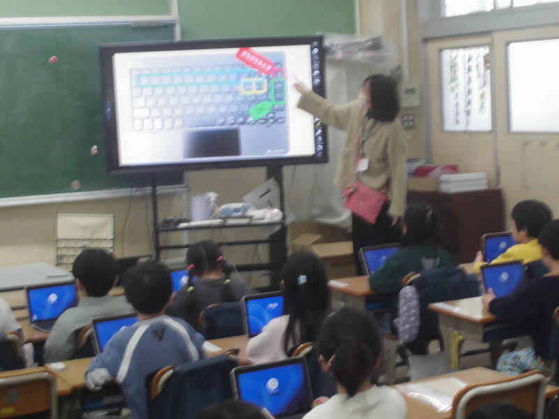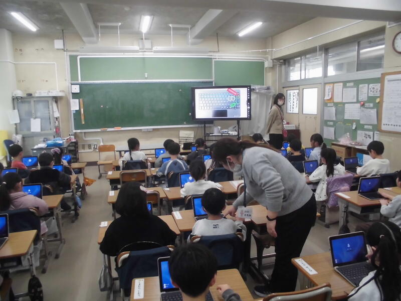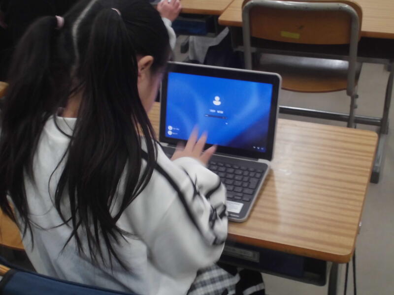1年生は、冬休み前に配付されたタブレットに初めて触れていました。
