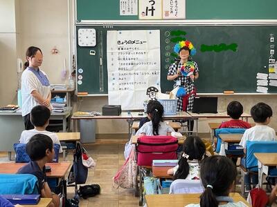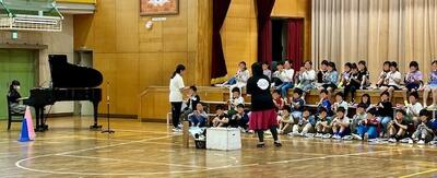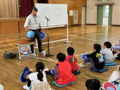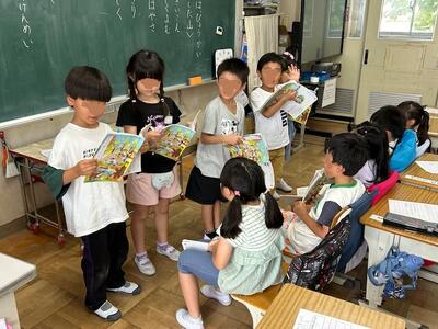 3時間目に、近隣5園の年長児を迎えて、5年生が学校探検(理科室や音楽室、図書室、1年生の教室などを巡る)と体育館レク(だるまさんがころんだ等)の2コースに分かれ、グループごとに活動をしました。来年度1年生で入学すると6年生としてペア学年を組みますので、今から仲よくなれることを願って…。