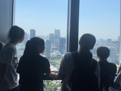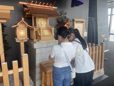 10:30 東京タワーを階段で上がる予定でしたが、暑さのため使用不可。全員でエレベーターに乗って、展望台へ。天気がよいので、美しい景色を眺めることができました。タワー大神宮では、お参りする子が続出?!どんなお願いをしているのでしょう。次は、待ちに待った昼食タイムです!