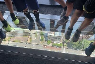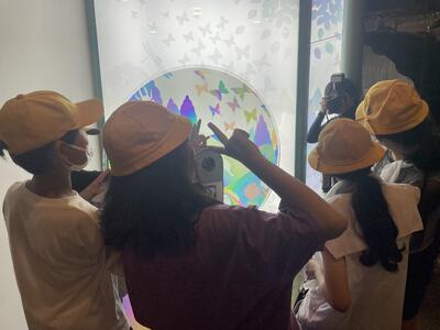 13:30 科学技術館の見学がスタートしました。ここでは、グループ行動になります。他の学校の児童も見学に来ているので、同じグループの友達とはぐれないように声をかけ合いながら体験を楽しんでいます。