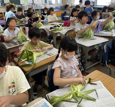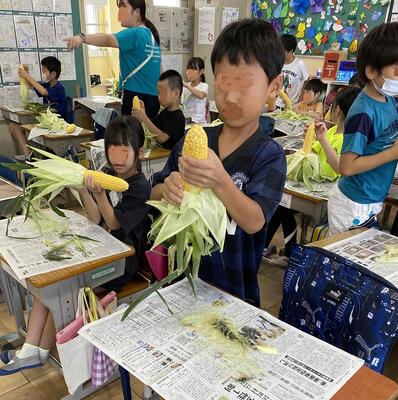 7月4日は、トウモロコシご飯。その皮むきをしたのが3年生でした。ひげ根まで丁寧に取ってくれました。一日遅れで、その様子を紹介します。