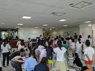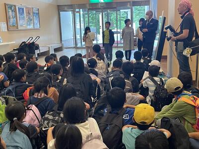 10:45 館内見学終了。体験コーナーの展示等を見た後、質問タイムに移りました。色々な質問が出て、みんなメモに勤しんでいました。学習のまとめとして、素敵な新聞づくりができそうです。