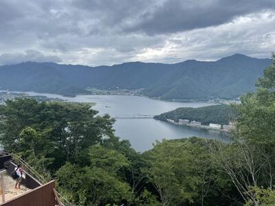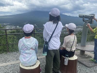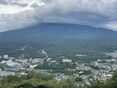 10:30 富士パノラマロープウェイに着く頃には、雨が止み涼しい中で景色を眺めることができました。富士山は雲がかかっていましたが、しっかり集合写真も撮れました。