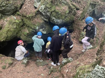 13:30 日頃の行いがよいのか、雨が止み、楽しみにしていた樹海洞窟探検へ。平田探検隊出発!!