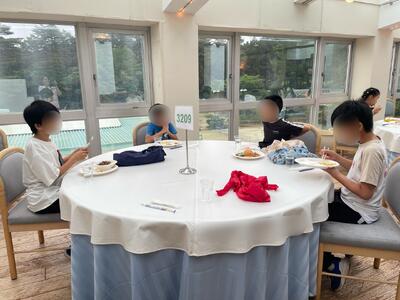 7:00 朝食です。部屋からの健康観察報告では具合の悪い子はいません。