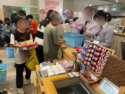 13:00 昼食後にお土産タイム。しばらく平田小だけでしたが、食事を済ませた学校が続々と押し寄せてこんな感じに。でも黄色い帽子の学校はほかになかったためわかりやすい!計画的に買うことができたでしょうか?