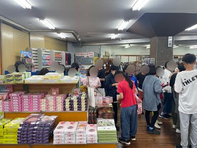 19:00 お土産タイム。自分のもの、家族のもの、お小遣いを握りしめて、頭の中で計算しながら品物を選んでいます。やっぱり信玄餅が人気なようです。どんなお土産を買ったのか、お楽しみに!