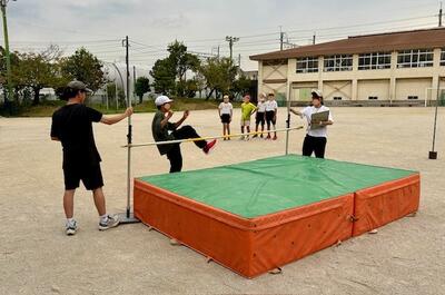 放課後、今日から陸上部の練習が始まりました。100m走、走り幅跳び、走り高跳びで最初の記録をとりました。がんばれ!