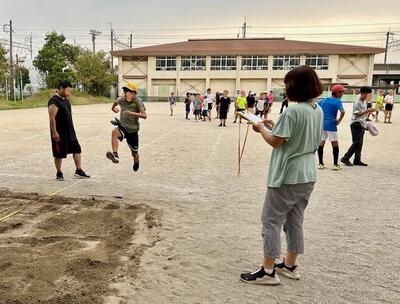 同じ5年生。体育では走り幅跳びに取り組んでいます。10月下旬の市内陸上大会に向けて、授業の中でも力を入れています。踏み切りができなかったり、脚だけで跳んでいたりとまだまだこれからです。