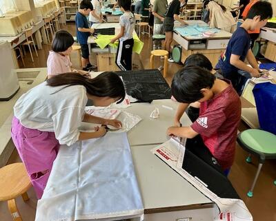 5年生は、最終的にナップザックを作ります。6年生はエプロンづくりですが、キットを買うか布から自分で揃えるかは選択できるようにしています。