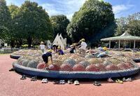 展望台から降りてくる人を待つ間に、変なグループ発見!何しているの?