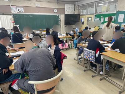 6年生がクラスごとにボードゲームに熱中している様子。実は、専門の方に協力をいただき、就職から定年退職までのライフサイクルをゲームを通して学ぶもの。結婚・育児・保険・その他、お金を扱いながら初めて知ることがたくさんあったようです。・・・この裏側には第二の人生、つまり退職後ヴァージョンがあることを子供たちは知りません。