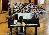 昼休みは、音楽クラブによる自主発表会が音楽室で行われました。「さんぽ」の合奏や「ツバメ」の歌と演奏を聴かせてくれました。低学年の部・高学年の部の二部制でしたが、満席で立ち見者がいっぱいという盛況でした。