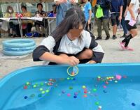 2年生は教室と廊下を使って、学年全員で「おもちゃランド」を楽しんでいます。自分たちで作った遊び道具を置いたお店と客を交代しながら、様々なブースを回って、手作りの景品までもらっています。
