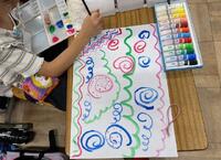 4年生は、彫刻刀で彫った作品を印刷中。赤・緑・青の好きな色インクをローラーで版に塗って、慎重に紙を置いてバレンでスリスリ!初めての版画作品は、授業参観の時に掲示されるのでしょうか。