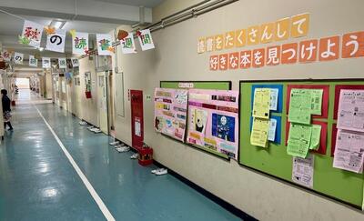 高学年のどこでも図書館コーナーには、5年生が国語で学習した宮沢賢治の著作を読んだ感想らや紹介文が模様のように掲示されていました。「あらすじ」「おすすめ表現・場面」など、学習の足跡を感じます。参観の際にどうぞ!