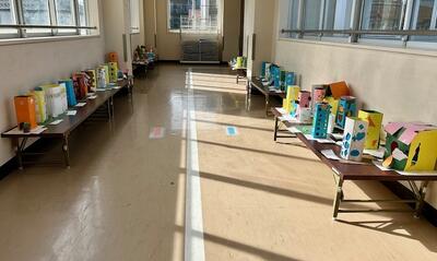 今年度最後の授業参観・懇談会で見てほしい作品や掲示が校内のあちこちで目を楽しませてくれます。