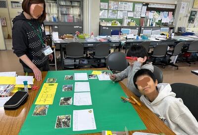 社会科で市川市の北部や南部、中央部などの特色を学びました。その総まとめとして、カルタを使ってスリーヒントクイズに勤しんでいます。