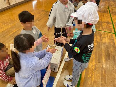 小さなサイズの臼と杵もあり、子ども達も餅つき体験を楽しんでいました。ここ最近は、家庭や地域で餅つきを行う習慣が減ってきているため、日本の伝統文化を体験する貴重な場となっていることを感じました。