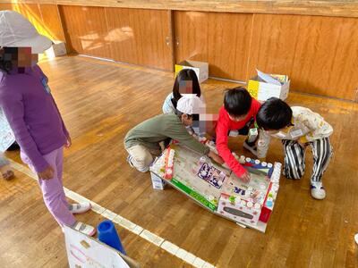 6年生がクラスごとにボードゲームに熱中している様子。実は、専門の方に協力をいただき、就職から定年退職までのライフサイクルをゲームを通して学ぶもの。結婚・育児・保険・その他、お金を扱いながら初めて知ることがたくさんあったようです。・・・この裏側には第二の人生、つまり退職後ヴァージョンがあることを子供たちは知りません。