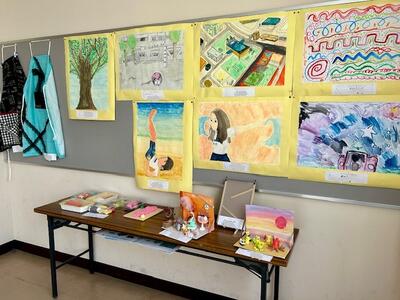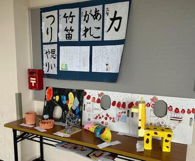 今年度最後の授業参観・懇談会で見てほしい作品や掲示が校内のあちこちで目を楽しませてくれます。