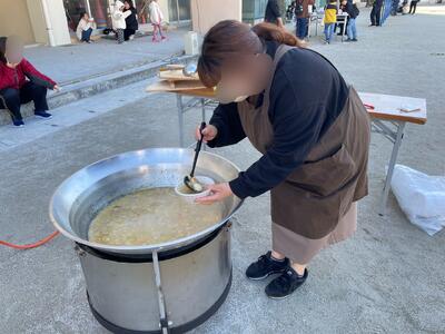 12時の時点で、まだ80人以上の方が並んでおり、大盛況です。校庭では、手芸部の品物販売やバザーもしていました。