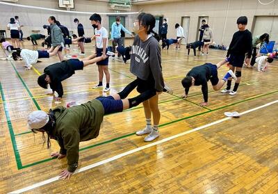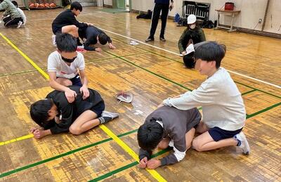 面談週間最終日、6年生だけ午後も授業です。アスリートのファンスギョンさんと、まずは体幹トレーニングを楽しみました。押したり引いたりして相手をひっくりかえす。手押し車で片手だけ放して足が床に着かないように耐える。足の動きと違う手の動きをさせて移動するなど。始終にこやかな子供たちです。