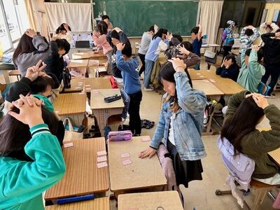 4年生の教室では、通級担当教員による出前授業が行われています。「アンガーマネジメント」がテーマです。友達や自分の欠点も見方を変えたら…とか、アイメッセージなどについて知り、マッスルリラックスや呼吸法を実際にやってみました。