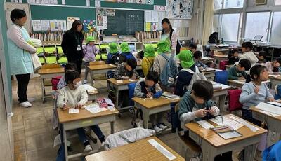 午後は、今年度最後の授業参観で、どの教室も溢れんばかりの参観者。4年生は算数で「わくわくプログラミング」、5年生も算数で「正多角形を描くプログラミング作り」に挑戦していました。1年生は「できるようになったよ発表会」を、2年生も「自分発見発表会」と題して個々の成長をグループで伝え合う活動をしていました。