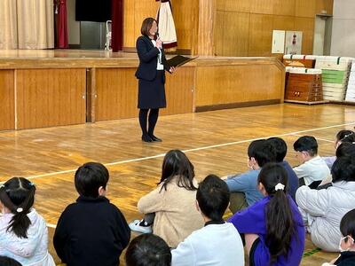 2学期終業式は、インフルエンザの広がりの兆候が見られたので、各教室でのオンラインで行いましたが、今日は体育館に集まりました。2025年は、教頭先生の話でスタートです。また、各学年代表の先生の今年の抱負も聞くことができました。子供たちはどんな思いを胸にしているのでしょうか。