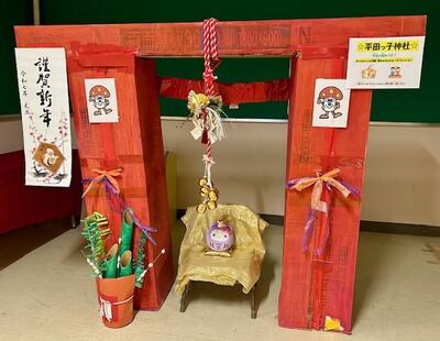 保健室手前のスペースに、今年も平田っ子神社が登場しました。願い事を記す紙も用意されていますよ。