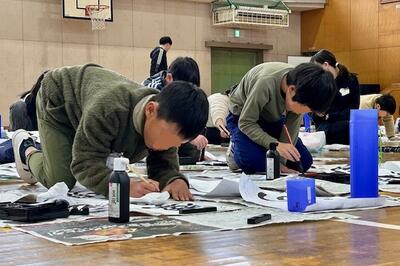体育館に6年生が集まって書き初めの練習をしています。3,4校時は4年生。明日は、3年生と5年生の番。昨年と違うのは、ストーブの灯油が燃える匂いがないこと。エアコン様様です!