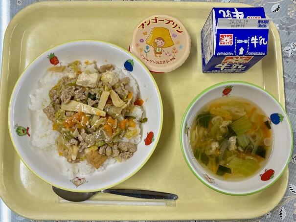 ごはん、回鍋肉、バンサンスー、梨ゼリー、牛乳