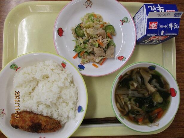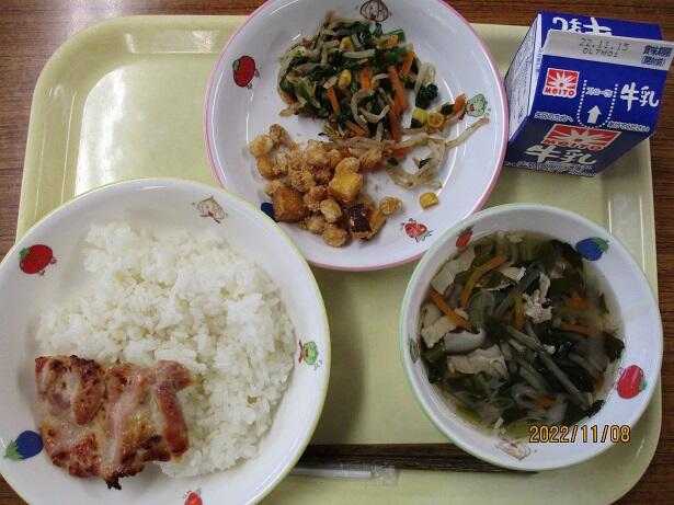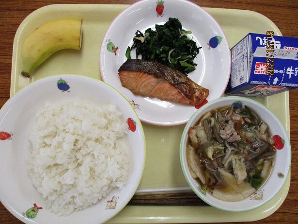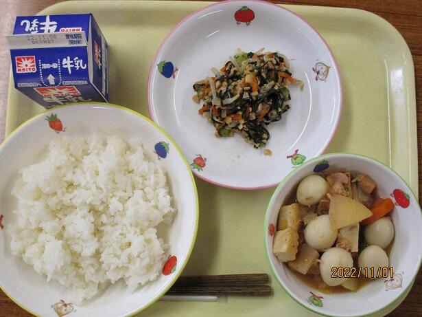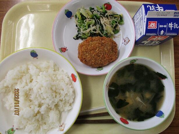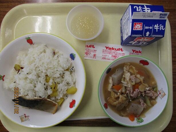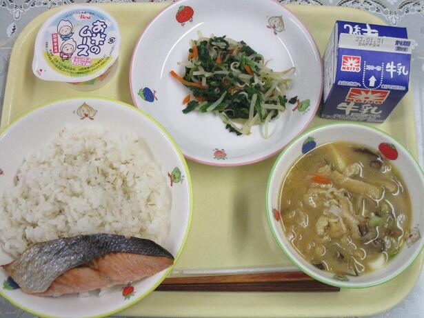今日から30日まで、約130年前に始まった給食提供を記念して「全国学校給食週間」となります。今日のメニューはそんな始まりを意識しています。鮭は適度な塩分と身のしっとりさを感じます。さつま汁の甘味と辛し和えの何とも言えない味わいは対照的。食の大切さを改めて考えさせられます。