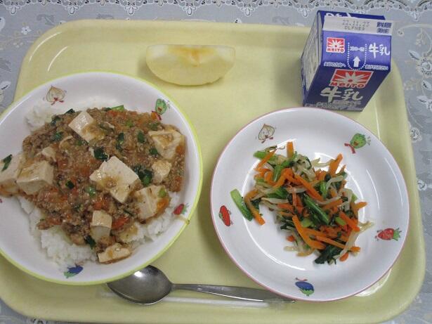 麻婆豆腐丼、ナムル、牛乳