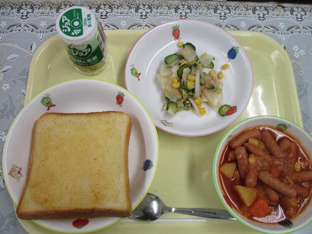 ハニートースト、インド煮、いかくんサラダ、牛乳